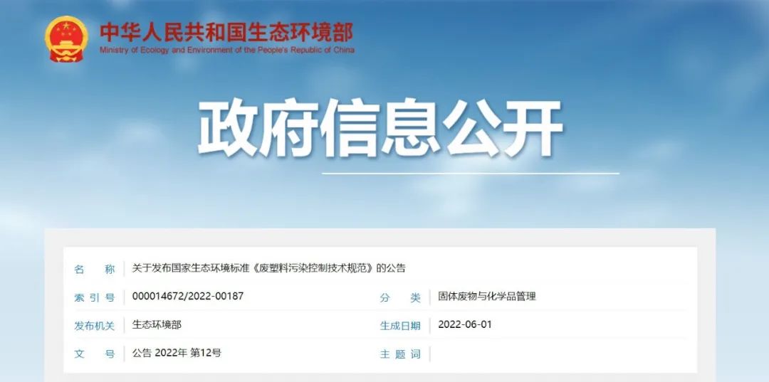 《廢塑料污染控制技術(shù)規(guī)范》(HJ 364-2022)